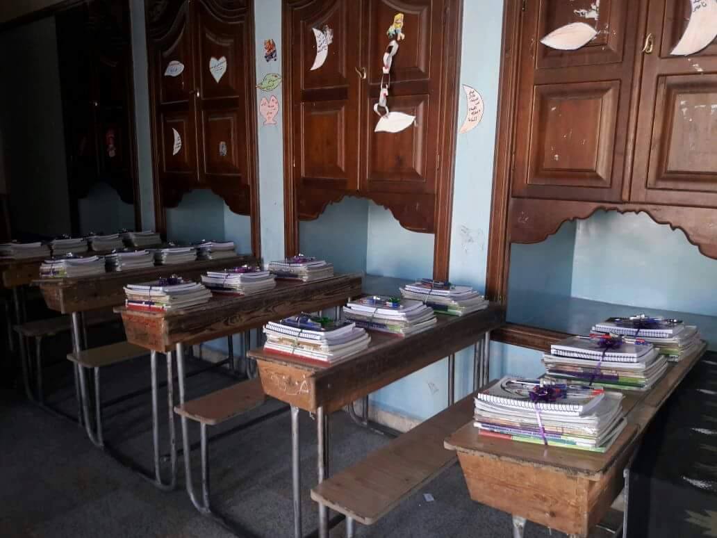 Unterrichtet wird an fünf Tagen in der Woche jeweils 4 Stunden. Das Wochenende ist Donnerstag und Freitag. Auch wenn einige Hilfsorganisationen uns helfen, so haben wir oft viel Mühe das nötige Schulmaterial bereitzustellen. Wegen der engen Belagerung müssen sich mehrere Schüler jedoch oft ein Buch teilen. Dennoch versuchen wir mit dem zu arbeiten was uns zur Verfügung steht.