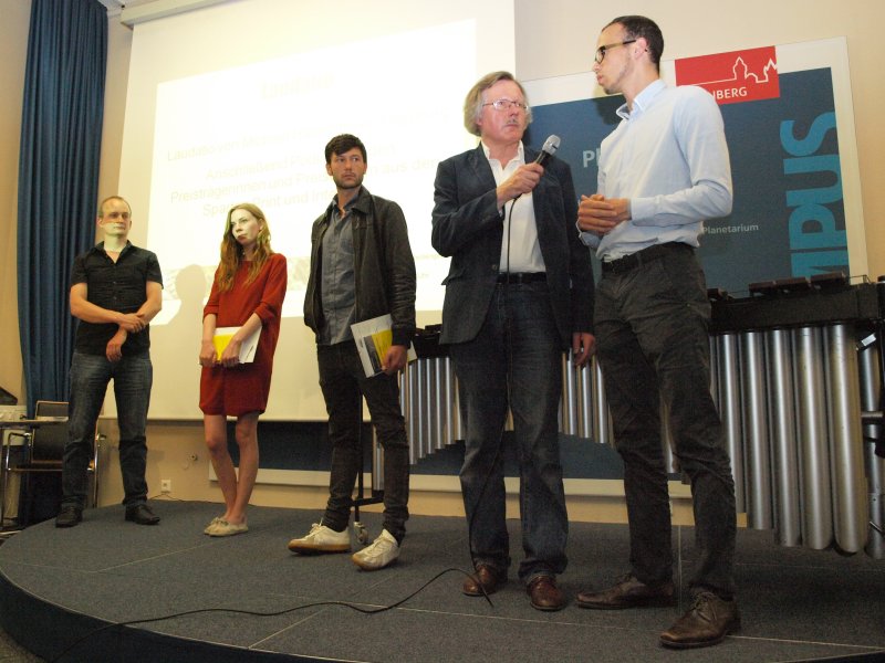 Am Nachmittag waren die Preisträger bei Radio Z in der Sendung Stoffwechsel eingeladen. Neben meinem Interview, das gleich am Anfang war, hatte ich noch einen zweiten Auftritt als Dolmetscher für den syrischen Protagonisten aus „eine jüdisch-moslemische WG“ von Simone Brannahl, erster Preis in der Kategorie Audio. Manchmal habe ich den Eindruck, ich werde meiner Rolle als Dolmetscher nie wieder entfliehen können.